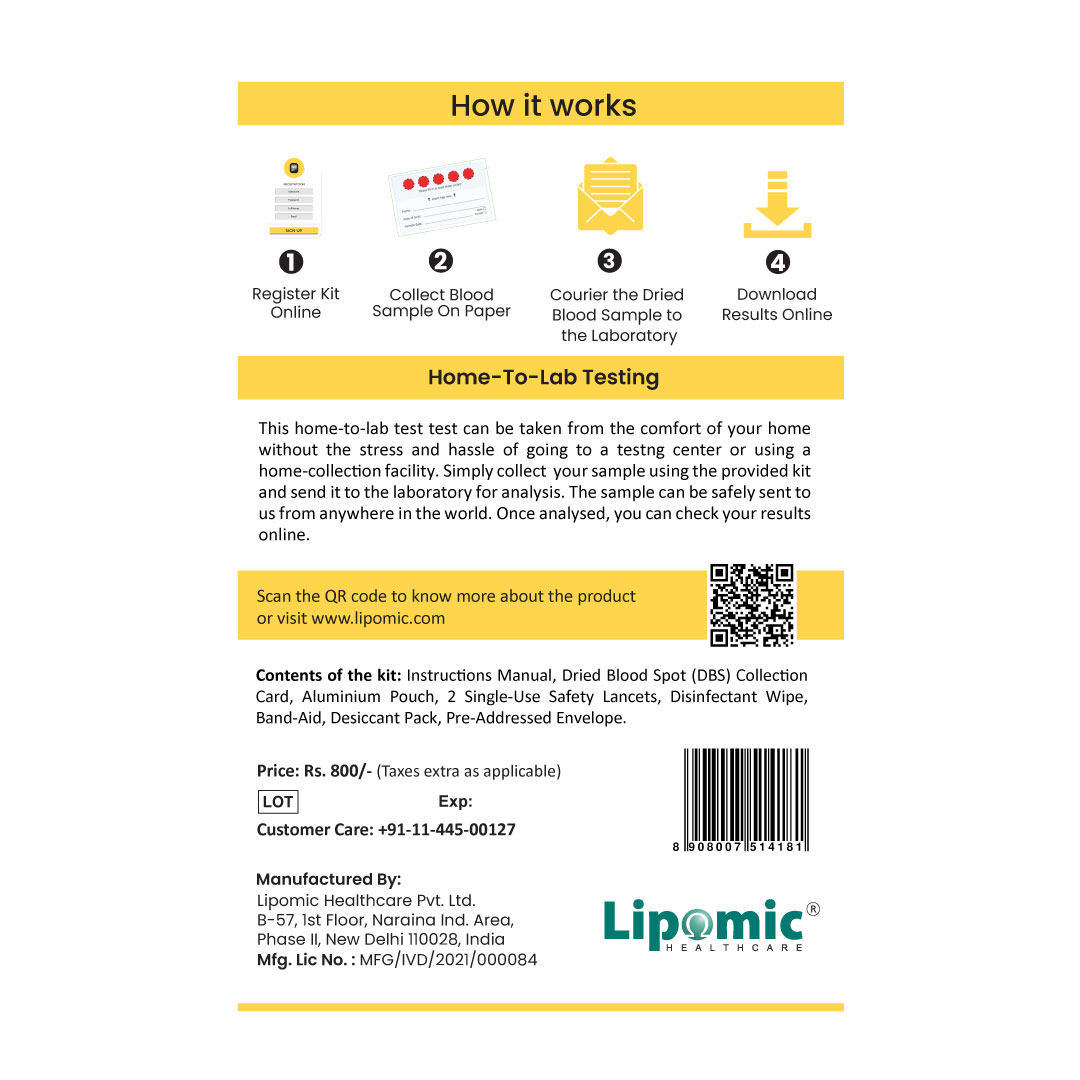 DBS testing is no more painful than a self-prick for a glucometer test. The kit contains one-time-use safety lancets which are used for pricking a finger and depositing a sample on a special filter paper card. The blood spot deposited on the filter paper card is allowed to dry, and hence the name dried blood spot. Similarly, some tests may require saliva, urine or stool samples, which can also be collected on special filter paper cards. This makes the sample collection completely non-invasive.